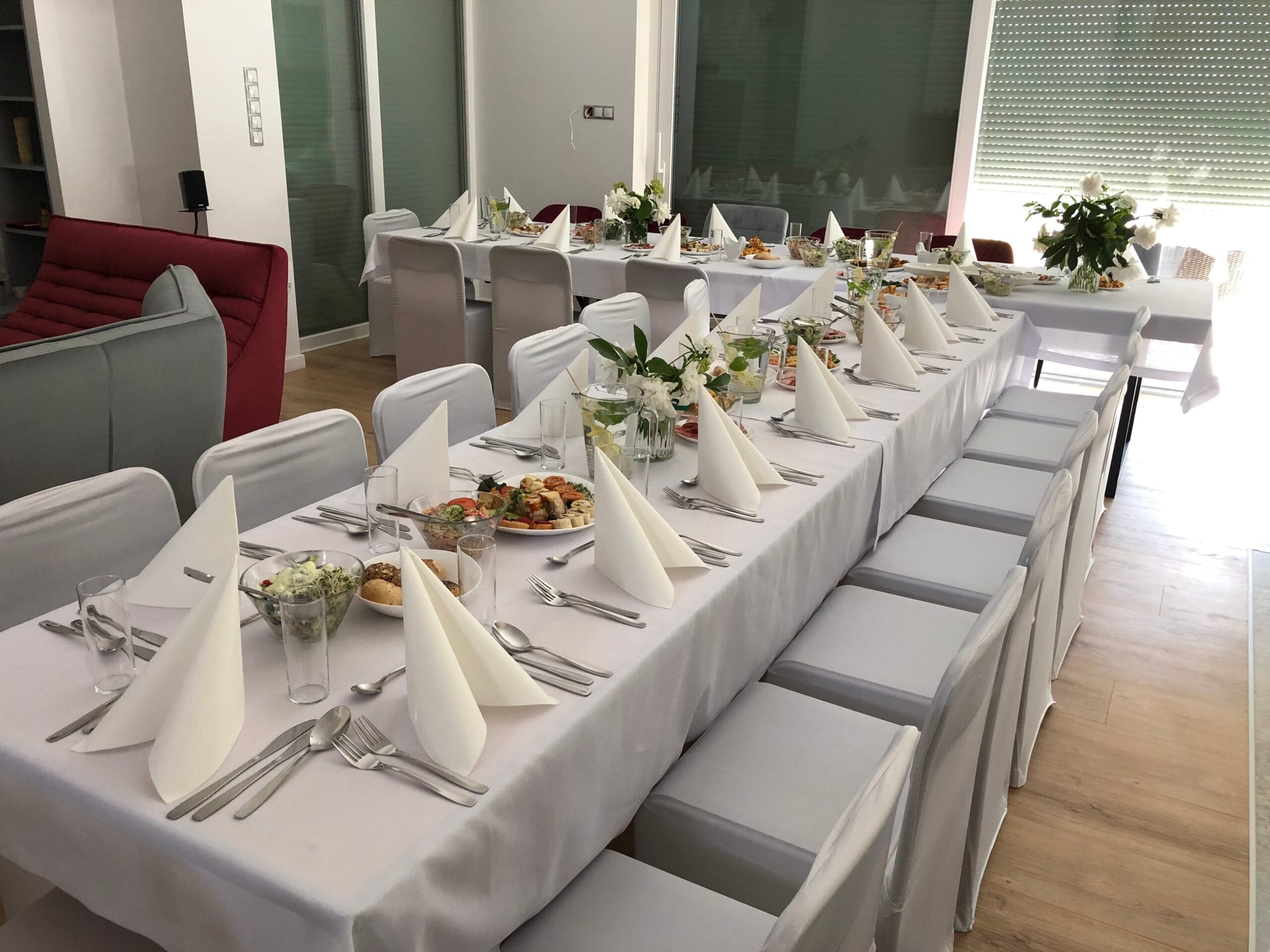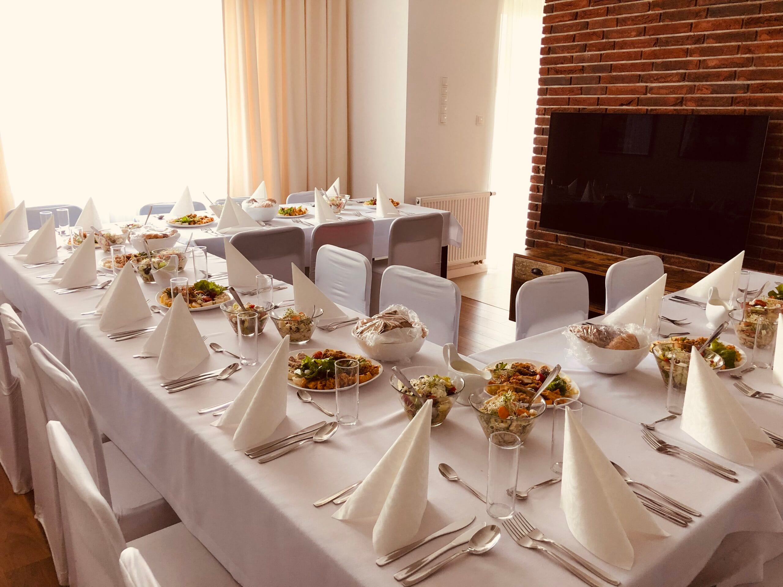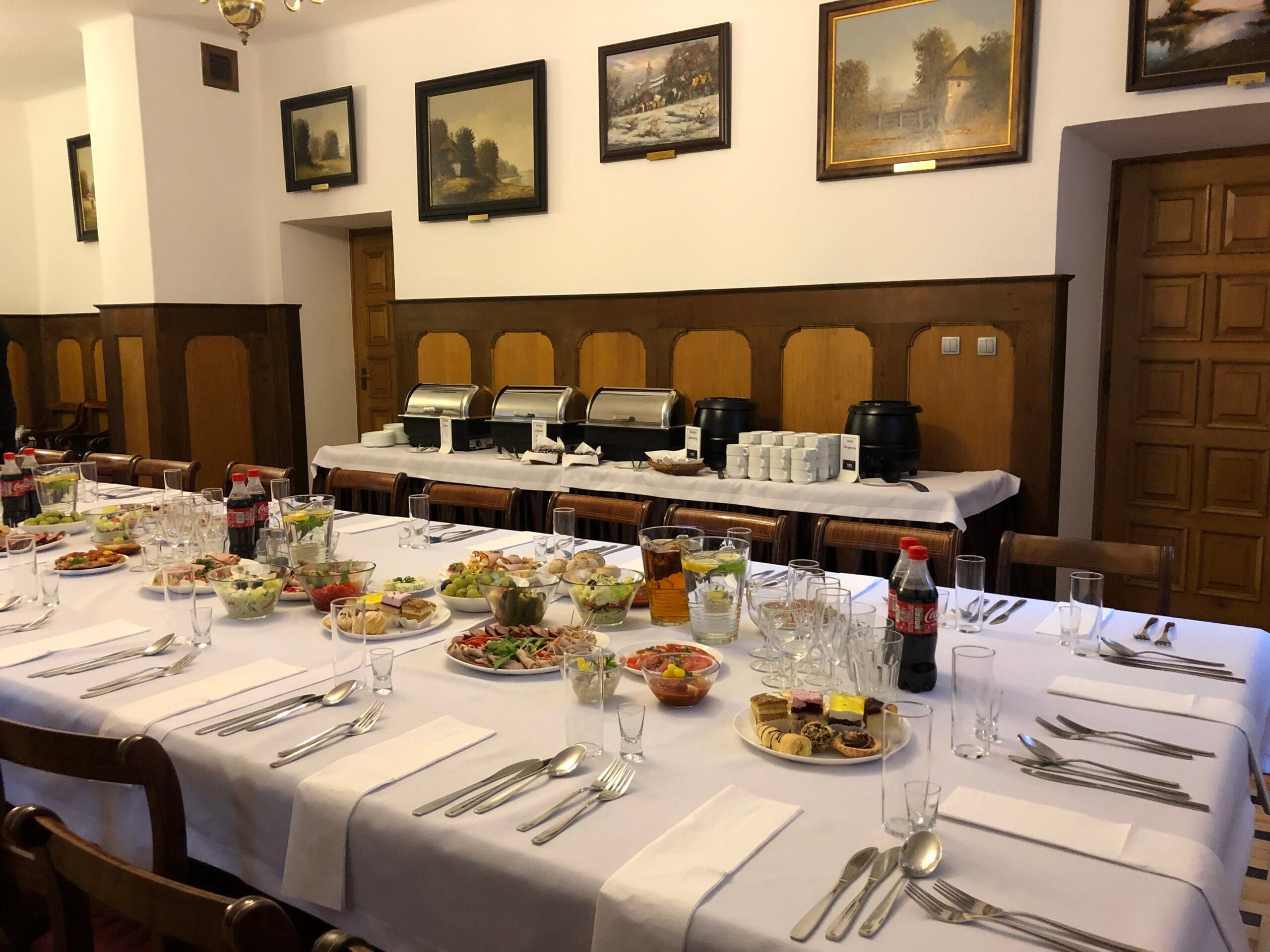 Obiad biznesowy, spotkanie na wysokim szczeblu, event pracowniczy, domówka
